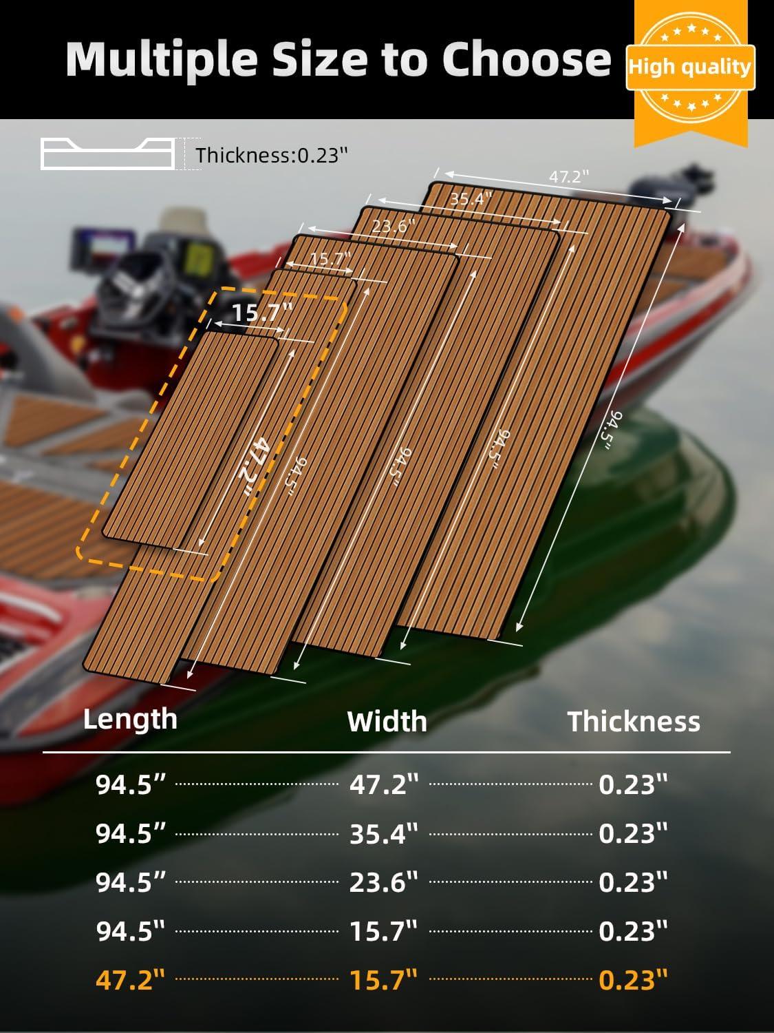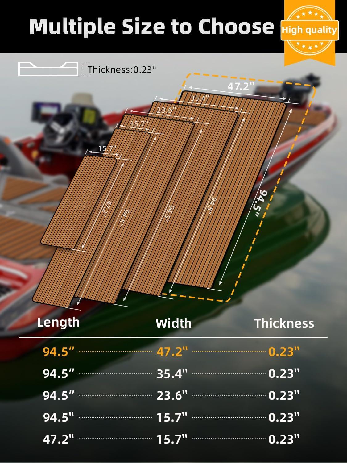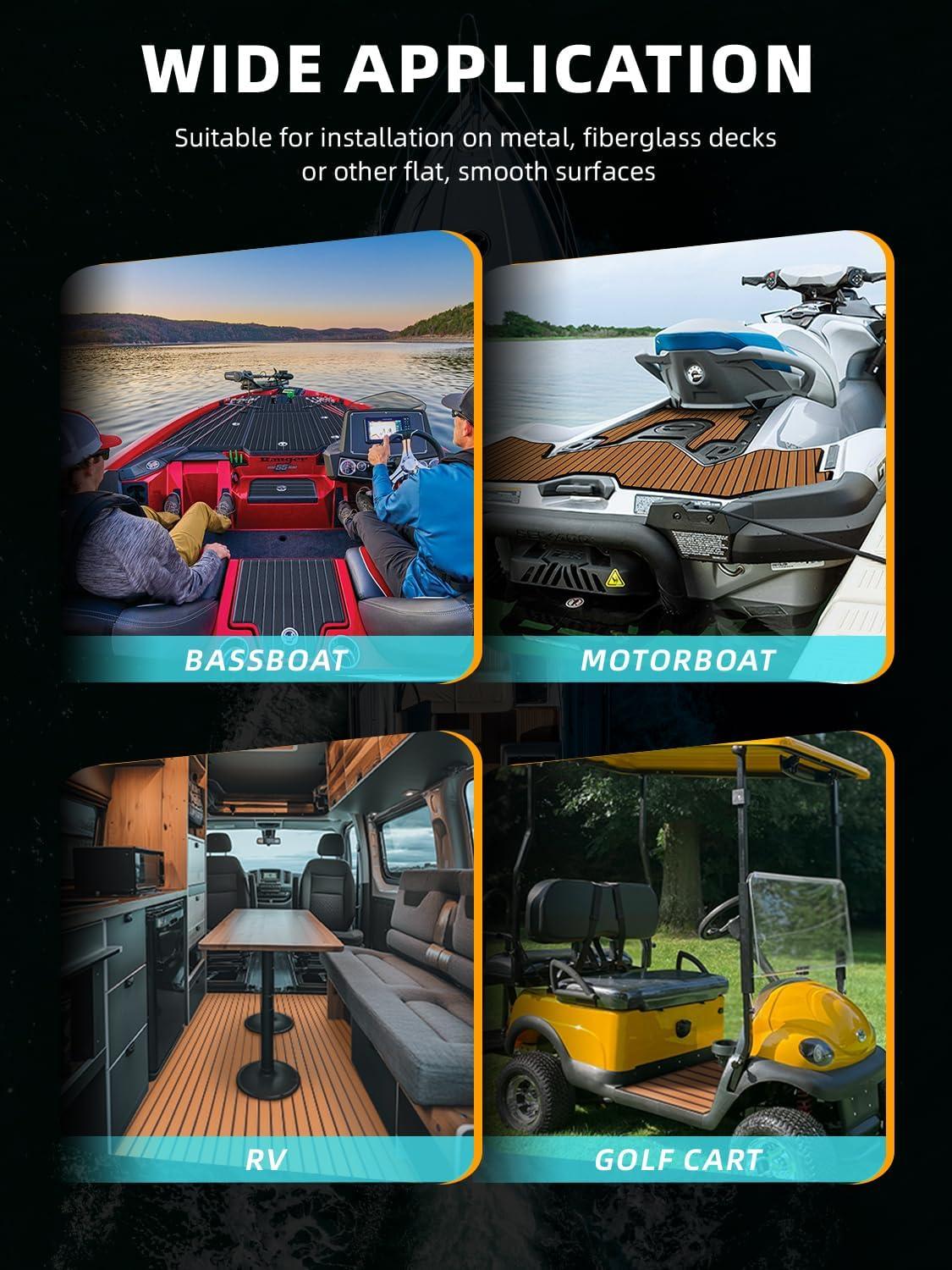 Wide Application – Very nice faux teak boat flooring, different colorful patterns available. They are perfectly used for Motorboat, Jon Boat, RV Yacht Kayak, Surfboard, Swimming Pool, Garden flooring and other boat decking